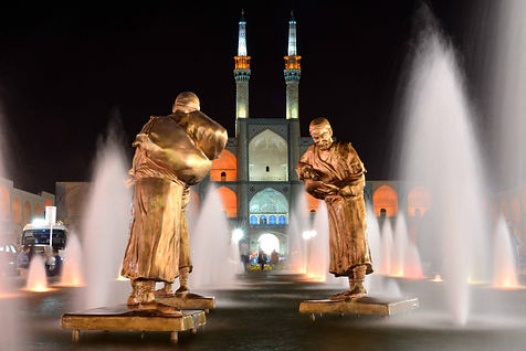 Le lendemain, on commence la journée par se balader dans les rues de la vieille ville, entre les maisons faites de torchis. On continue jusqu'au musée de l'eau, la visite est rapide mais intéressante: on apprend comment cette ville au milieu du désert est alimentée en eau. On se rend en fin de journée au temple du feu, un lieu de culte zoroastrien qui alimente un feu depuis 1500 ans! Le record est en Ouzbekistan avec un feu allumé depuis 3000 ans, du moins si un mage n'a pas fait de gaffe durant cette période, on ne pourra pas vérifier... On croise sur place Victor et Delphine, un couple de français, qui est tenté par nous suivre vers Garmeh demain et de partager la course en taxi avec nous. En soirée, on se rend dans un "zurkhaneh", un gymnase traditionnel iranien où est pratiqué le sport national: le "Varzesh-e Pahlavani". C'est un mélange de danse, de gym, d'échauffement et d'haltérophilie!
